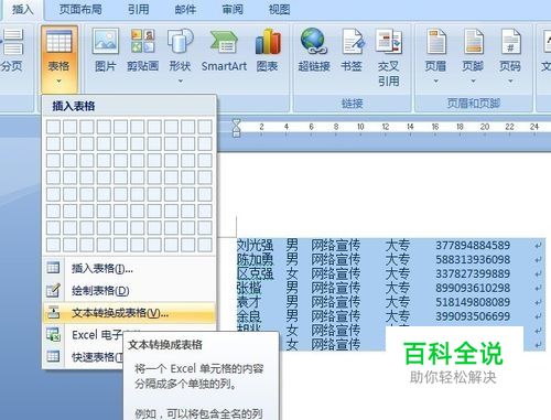 打开WORD文档,并把刚才复制的数据内容粘贴在WORD文档中,并全选。