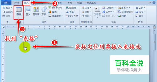 打开Word文档,我们先将 鼠标定位到需要插入表格的位置。接着点击主菜单中的 “插入”选项,并在其子项中找到 “表格”选项。如图所示: