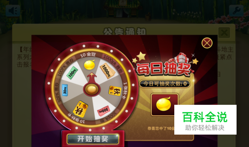 每天进入游戏后,有个每日抽奖。点击开始抽奖,就可以赢得金豆或秋卡等。