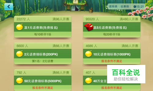 现以欢乐场中的比赛场为例,可以选择赢1元话费赛,赢5元话费赛等等。赢得比赛就可以免费赢得花费了。