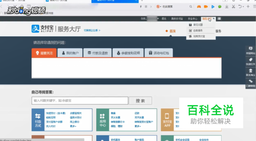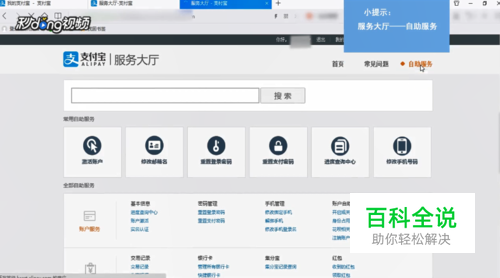 在电脑浏览器上登录支付宝,点击右上角的“服务大厅”。