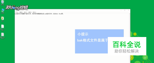 知道了.bak是属于哪个软件的备份文件后,右键单击这个文件,选择“重命名”,把文件名改为该软件的文件类型即可打开了。