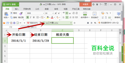 然后把鼠标放在C2单元格输入完的公式后面,直接按“回车键”就可以了。这样我们的鼠标就自动跳到了下一单元格,相差天数也就计算出来了。