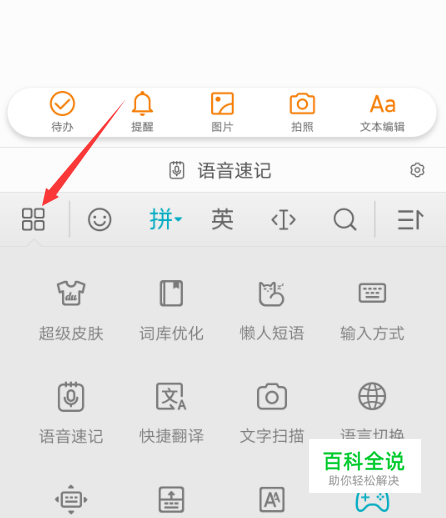 光标定位之后,手机会自动弹出打字的小键盘,如图所示,以华为手机为例,在小键盘最左侧上方位置,我们可以看到一个田字形小图标。