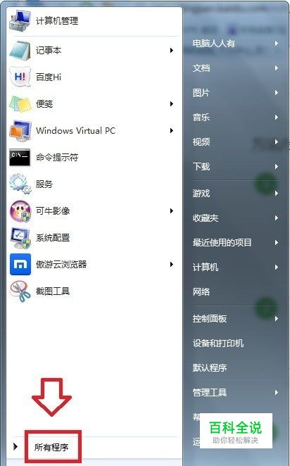 开始→所有程序。