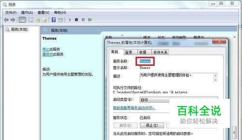 因为主题服务服务名称和显示名称同样是: Themes (主题服务),所以即便是复制错误,也不会出错的。但是找一个两者不一样的服务,就要格外小心了。 比如传真服务:服务名称为:Fax ;显示服务为:传真。