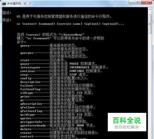还可以使用sc命令启动、停止相应的服务,具体使用命令和参数也可以看帮助: sc /?