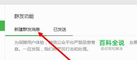 点击以后,我们就点击上面的新建群发消息,点击新建群发消息以后,我们就进入到写消息的模式了。