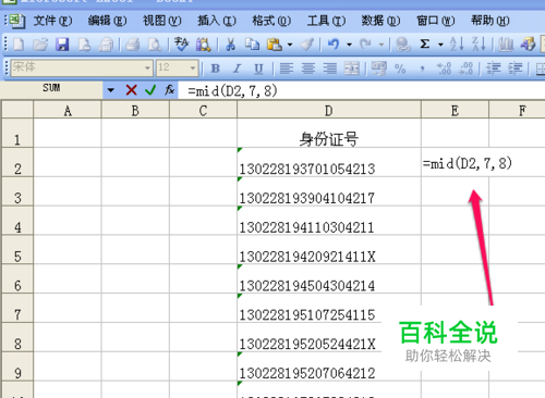 在E2单元格里输入=MID(E2,7,8) ,含义在E2单元格中提取第7个字符后的8个字符,根据需要在相关的单元格输入公式。