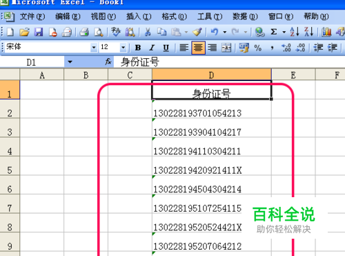 打开excel电子表格软件,输入要编辑的带身份号码的数据。