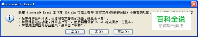 这些提示都是说你所编辑的文档含有与文本文档不兼容的格式,有这些提示说明你把文件保存成了文本文件,而并没有保存成.doc,.xls,.ppt等格式。查看保存格式的方法:“文件”-“另存为”保存类型为:文本文件了,所以才会出现那样的提示。