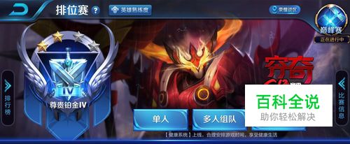 有段位的限制: 组队的话,也不是说现在是在线的,同时是我们的好友就可以进来一起游戏了,它会有一个限制,只允许你拉这几个排位赛段位的朋友,右上角会有显示。