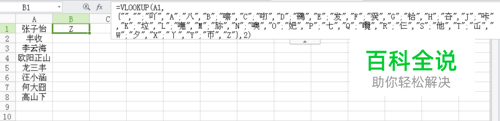 在B1列中输入如下公式: =VLOOKUP(A1,{"","";"吖","A";"八","B";"嚓","C";"咑","D";"鵽","E";"发","F";"猤","G";"铪","H";"夻","J";"咔","K";"垃","L";"嘸","M";"旀","N";"噢","O";"妑","P";"七","Q";"囕","R";"仨","S";"他","T";"屲","W";"夕","X";"丫","Y";"帀","Z"},2) 回车确定后,B1列中就出现了首字母。怎么只有一个?别急,还有下一步。