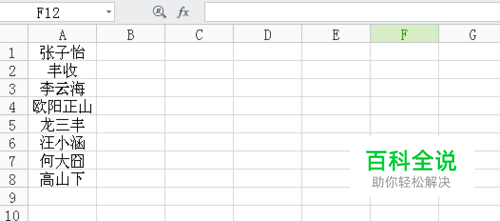 打开Excle,新建一个文件,在第A1列中输入姓名。
