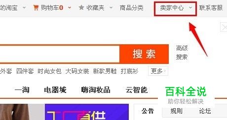 首先我们进入到淘宝网,在淘宝网的正上方偏右有一个“卖家中心”我们点击这个“卖家中心”