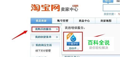 在“卖家中心”的左侧我们点击“我购买的服务”在选择自己购买的服务,如果没有购买的话我们可以先去买一个,一般这些软件都有试用期的。