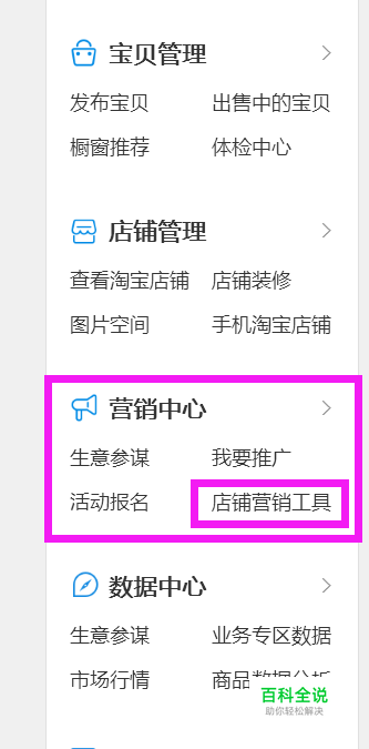 打开卖家中心,在“营销中心”下面有“店铺营销工具”