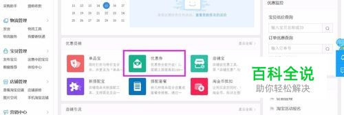 点开“店铺营销工具”,对话框里,有“优惠券”,点击后,如果没有购买官方优惠券服务,则可以按照提示购买。