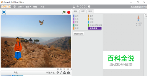 Scratch实例 游戏结束画面的设计,完结游戏。结束语是,今晚请你吃鸡哟!有特点的结束语可以激发游戏者的兴趣。