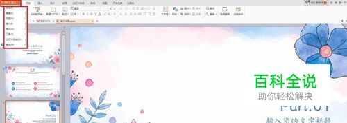 在页面左上角找到“WPS演示文稿”,点击“WPS演示文稿”旁边的倒三角形,在出现的选项栏中找到“文件”。