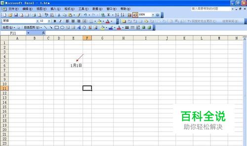 在打开的Excel工作表中输入“1-1”后,鼠标放置任意空白处,它即将变成1月1日,如图所示