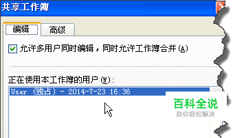 在“共享工作簿”中,点击“编辑”选项卡,在其窗口中勾去“允许多用户同时编辑,同时允许工作簿合并”可以取消共享工作簿