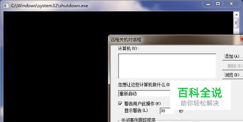 第二步:单击“确定”会出现“远程关机对话框”,如下图。