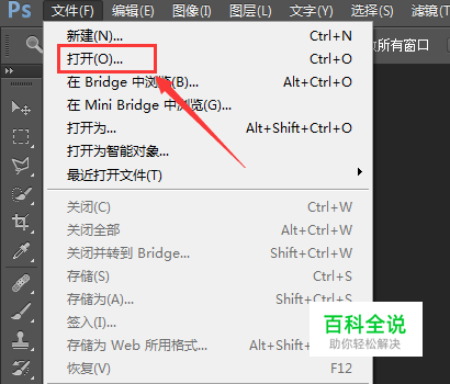 在该界面内找到文件菜单里的打开选项,如图所示:
