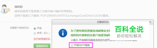 勾选 "开启IMAP/SMTP 服务", 然后点 "确定"