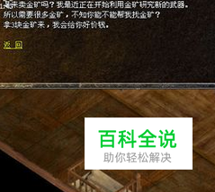 进入武器店,点击武器店NPC,选择对话。一下一步知道NPC给你选择出现“赊帐”的时候你会发现背包里金矿没了。然后他就会指示你比奇铁匠问问。