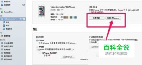 进入到iTunes,在设备这里选择自己的手机按钮,如果之前没有使用过iTunes的话,还需要登录icloud帐号,然后在这里选择恢复我的iphone。