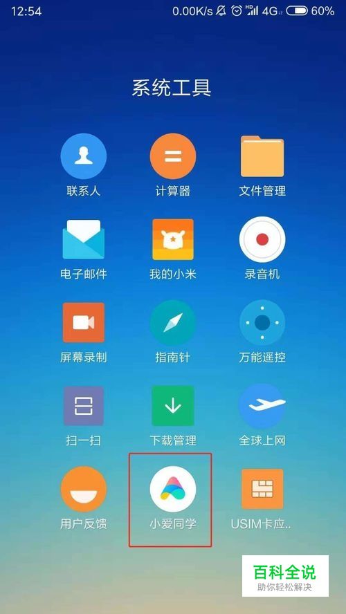 点击 小爱同学(默认是在系统工具文件夹里的)