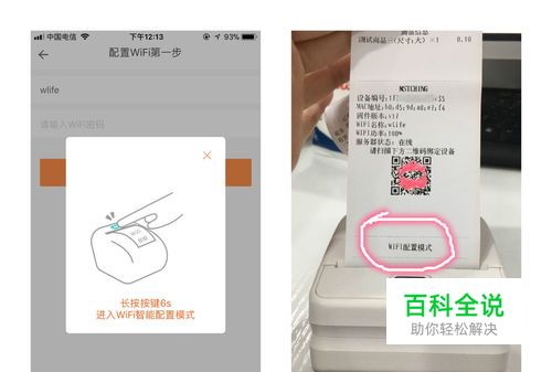 GPRS打印机和WiFi打印机的联网教程是不一样的,WiFi打印机配置联网需要搭配手机APP来完成,WiFi配置分为三步,首先长按打印机6秒后松开,打印机进入WiFi配置模式,打印机会打印出一张小纸条。