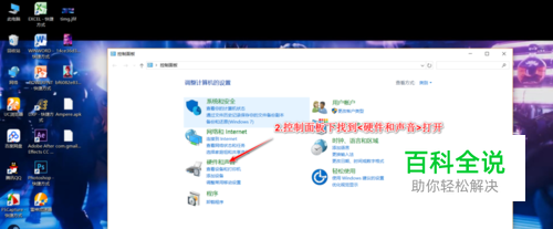 2.控制面板下找到<硬件和声音>打开 /这里或者直接从搜索框搜索进入也可
