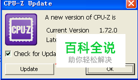 运行后弹出cpu-z update的小窗口,这里我们点击窗口下的update即可。