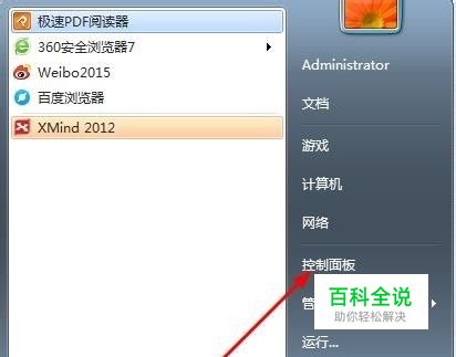 第一步在桌面左下角点击开始图标, 点击控制面板。