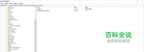 进入HKEY_LOCAL_MACHINE\SOFTWARE\Policies\Microsoft\Windows Defender下面增加一个字符串项:DisableAntiSpyware,其值为0