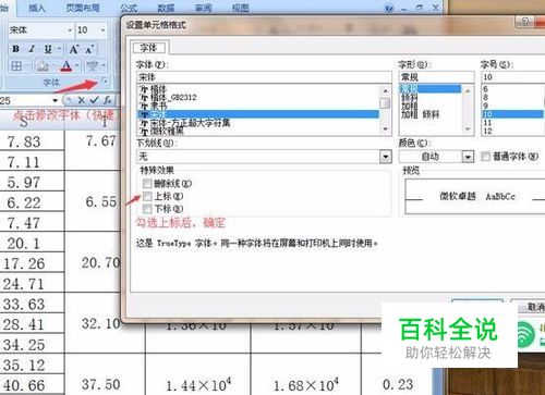下图全部操作,先选中需要变成上标的数字,然后点击修改字体的快捷式,再勾选特殊效果中的上标;
