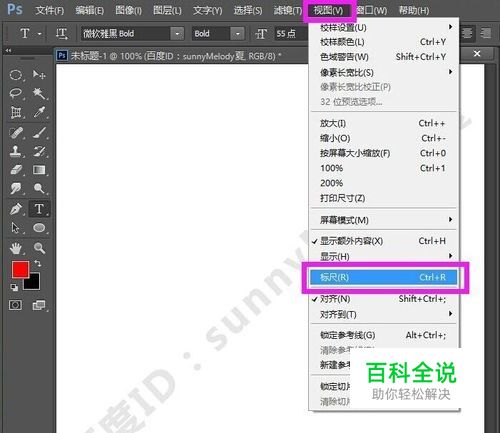 我们先来介绍第一种方法。执行菜单栏中的视图—标尺,或者按快捷键Ctrl+R打开标尺,如下图所示。