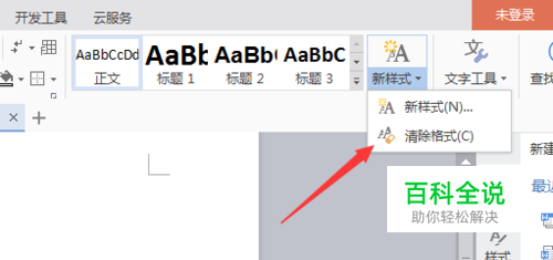 进行点击了新样式之后,弹出了下拉菜单选中为 清除格式 的选项。