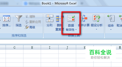 EXCEL2007的数据有效性,先点击表格中的<><数据>。