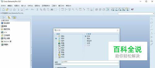 首先,双击打开或者右键选择打开proe5.0软件,使用其他版本的软件或者core都能使用该教程;然后,新建一个实体文件,使用缺省,点击确定。