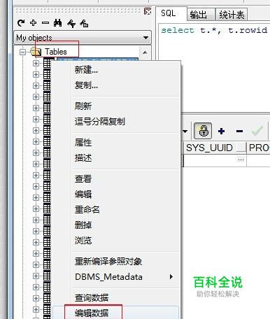 如果输入的是‘select t.* from 表 t’,这条语句和上面的那个语句查询结果是相同的,但因为多查了个rowid,所以才能修改数据。