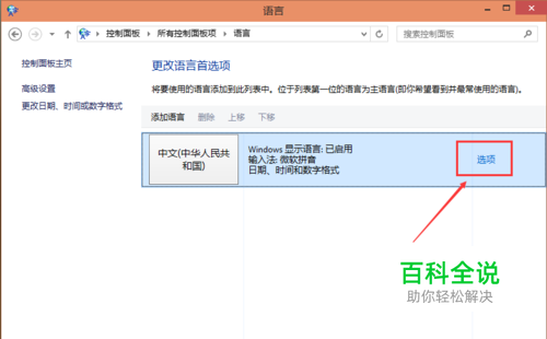 在语言界面上可以看到Windows显示语言已启用 输入法,然后点击后面的选项,如下图所示。