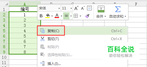 选中目标单元格,单击鼠标右键,选择“复制”。