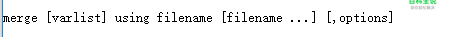 merge命令语法:[varlist]代表合并进去的新变量, using filename指的是所要与原文件合并的文件路径。