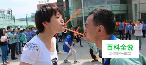 活动流程:同上一个游戏一样要分出若干人一组,每人嘴里叼一支吸管,第一个人在吸管上放一个有一定重量的钥匙环之类的东西,当比赛开始时,大家不能用手接触吸管和钥匙环,而是用嘴叼吸管的姿势把钥匙环传给下个人,直到传到最后一个人嘴叼的吸管上。