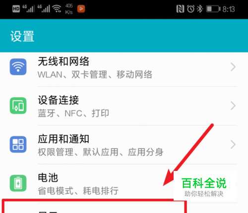 在手机设置列表中,我们点击页面的显示的选项进入到手机的显示设置。