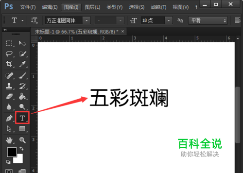 首先在白色的画布上面输入文字,比如:五彩斑斓。