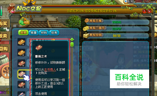 铸造入门【1级】,制作绿松石,次级修复宝石,次级强化宝石,在【吴郡】、【巴郡】、【魏郡】等地的古书商人处购买,费用为8K三国币。